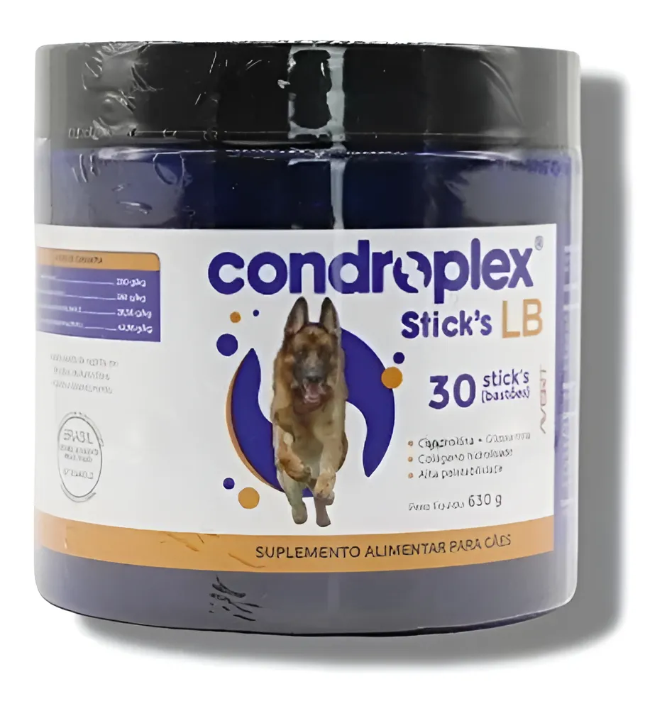 Condroplex Stick’s LB é um suplemento alimentar para cães, contendo condroitina, glicosamina e colágeno hidrolisado. É indicado para cães de raças grandes e gigantes em fase de crescimento, idosos submetidos a exercícios constantes ou em condições especiais.