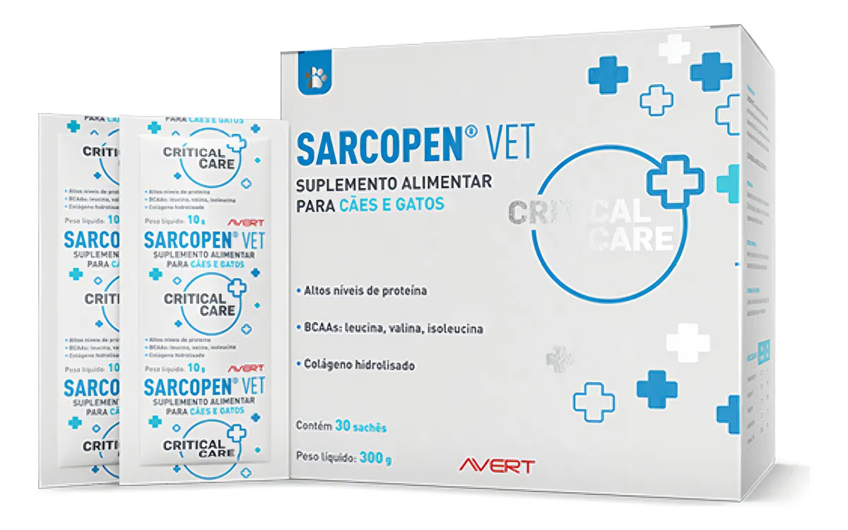 Sarcopen Vet 300 g Suplemento para cães e gatos 30 Unidades é um suplemento indicado para cães e gatos. Contém altos níveis de proteína e aminoácidos de cadeia ramificada (BCAAs), nutrientes essenciais aos tecidos musculares e para uma suplementação proteica adequada.